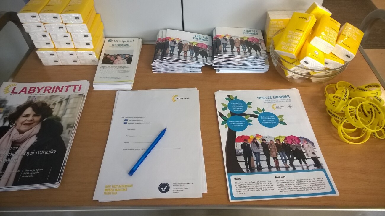 Joukko FinFamin toiminnassa mukana olevia henkilöitä kokoontui tiistaina 29.8. Rovaniemen Järjestötalolle suunnittelemaan mielenterveysomaisille suunnattua toimintaa ja toiminnan organisointia. Samalla kokouksessa päätettiin perustaa Pohjois-Suomen ensimmäinen mielenterveysomaisten oma yhdistys. Yhdistys sai nimekseen Lapin mielenterveysomaiset – FinFami ry. TIEDOTE 30.8.2018 Joukko FinFamin toiminnassa mukana olevia henkilöitä kokoontui tiistaina 29.8. Rovaniemen Järjestötalolle suunnittelemaan mielenterveysomaisille suunnattua toimintaa ja toiminnan organisointia. Samalla kokouksessa päätettiin perustaa Pohjois-Suomen ensimmäinen mielenterveysomaisten oma yhdistys. Yhdistys sai nimekseen Lapin mielenterveysomaiset – FinFami ry. Joka toinen suomalainen sairastuu jossain elämänsä vaiheessa mielenterveyden häiriöihin. Sairastuminen koskettaa myös heidän läheisiään ja perhettään. FinFami on järjestö, joka tarjoaa tietoa, tukea ja vertaisyhteisön kaikille omaisille, joiden läheinen on psyykkisesti sairastunut tai jotka ovat huolissaan läheisensä mielenterveydestä. FinFamilla on yhteensä 17 jäsenyhdistystä ympäri Suomen, mutta tähän saakka toimintaa ei ole pohjoisessa Suomessa ollut lainkaan. Nyt asia on onneksi korjaantunut, kun vertaistukitoiminta on aloitettu Rovaniemellä. Toiminta on lähtenyt vauhdilla käyntiin ja yhteydenottoja on tullut paljon. FinFami tähtääkin viime kädessä siihen, ettei kenenkään omaisen tarvitsisi jäädä ilman tukea. ”Sillä ajatuksella tähän toimintaan on lähdetty, että kaveria ei jätetä yksin”, toteaa myös Lapin uuden yhdistyksen puheenjohtaja Pekka Rompasaari. Lapin FinFami-yhdistyksen perustamisen yhteydessä valittiin yhdistykselle myös ensimmäinen hallitus. Yhdistyksen perustamistoimissa ja rakenteiden luomisessa menee vielä hetki, mutta varsinainen toiminta on jo käynnissä ja siihen ovat tervetulleita kaikki, vaikka yhdistyksen jäseneksi ei vielä ole voinutkaan liittyä. Toiminta keskittyy toistaiseksi Rovaniemelle, mutta tulevaisuudessa toimintaa on tarkoitus ulottaa myös muille paikkakunnille. Avoin vertaistukiryhmä kokoontuu syksyllä vielä 4.9., 9.10., 13.11. ja 11.12. klo 17.30-19 Rovaniemen Järjestötalolla. Samassa paikassa 14.9. klo 17 järjestetään Ensitietopäivä, jonka teemana on nuoruusiän psyykkinen sairaus. Lisäksi Lapin mielenterveysomaiset juhlistavat 9.10. valtakunnallista mielenterveysomaisten päivää eli Ilonan päivää. Uuden yhdistyksen tulevasta toiminnasta löytää toistaiseksi parhaiten tietoa osoitteesta www.lappilaiset.fi/toimija/lapin-mielenterveysomaiset-finfami/ ja lisätietoa FinFamin toiminnasta yleisesti löytää osoitteesta www.finfami.fi.